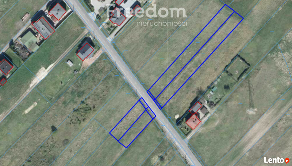 Działki o wymiarach ok. 20m/40m oraz 20m/110m ulokowane są naprzeciw